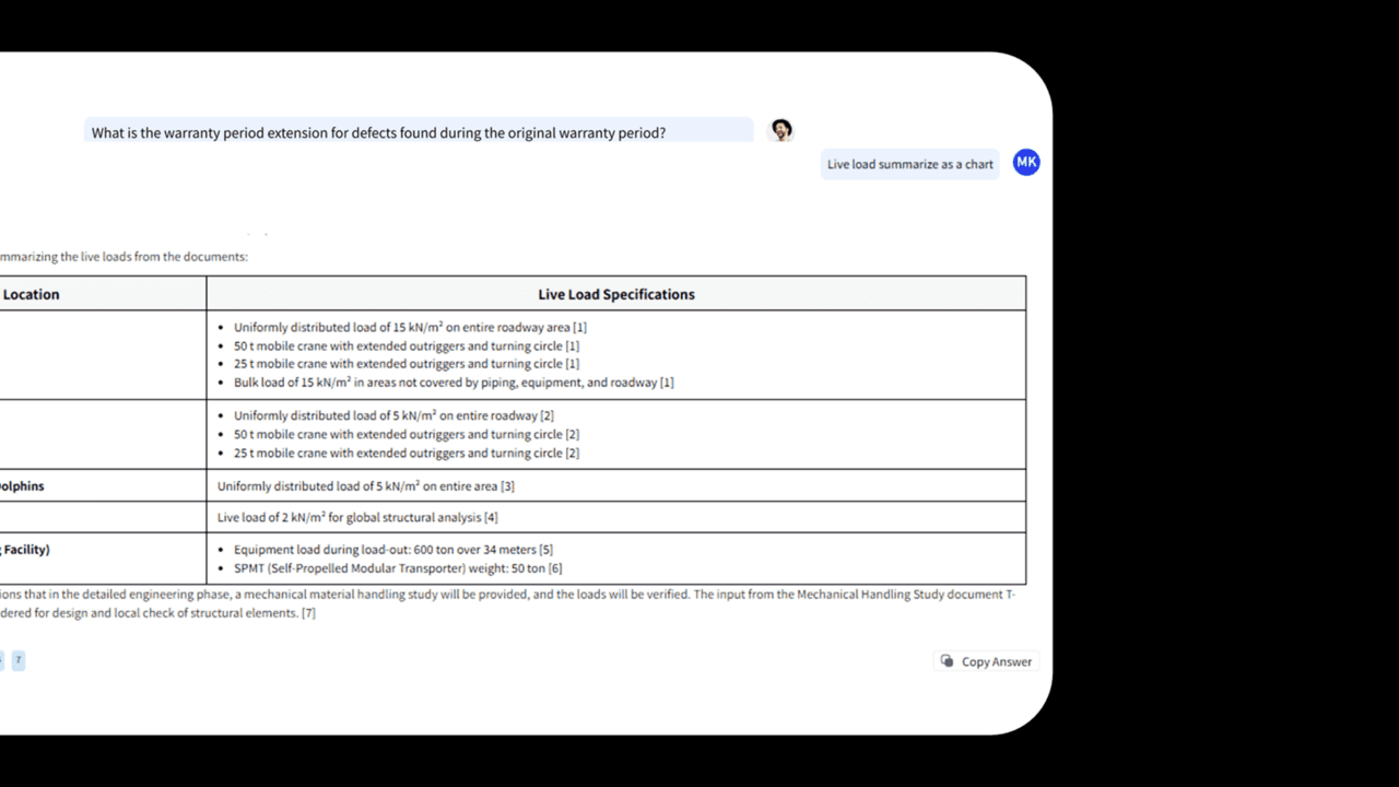 현장 및 설계 검토를 위한 지리공간·건설 데이터 AI 분석.